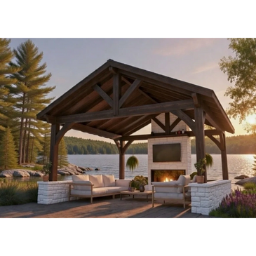 We design and build a refined selection of pavilion styles, each crafted to complement the natural character of Muskoka and the way families gather outdoors. Our structures balance architectural sophistication with the rugged warmth of timber construction.